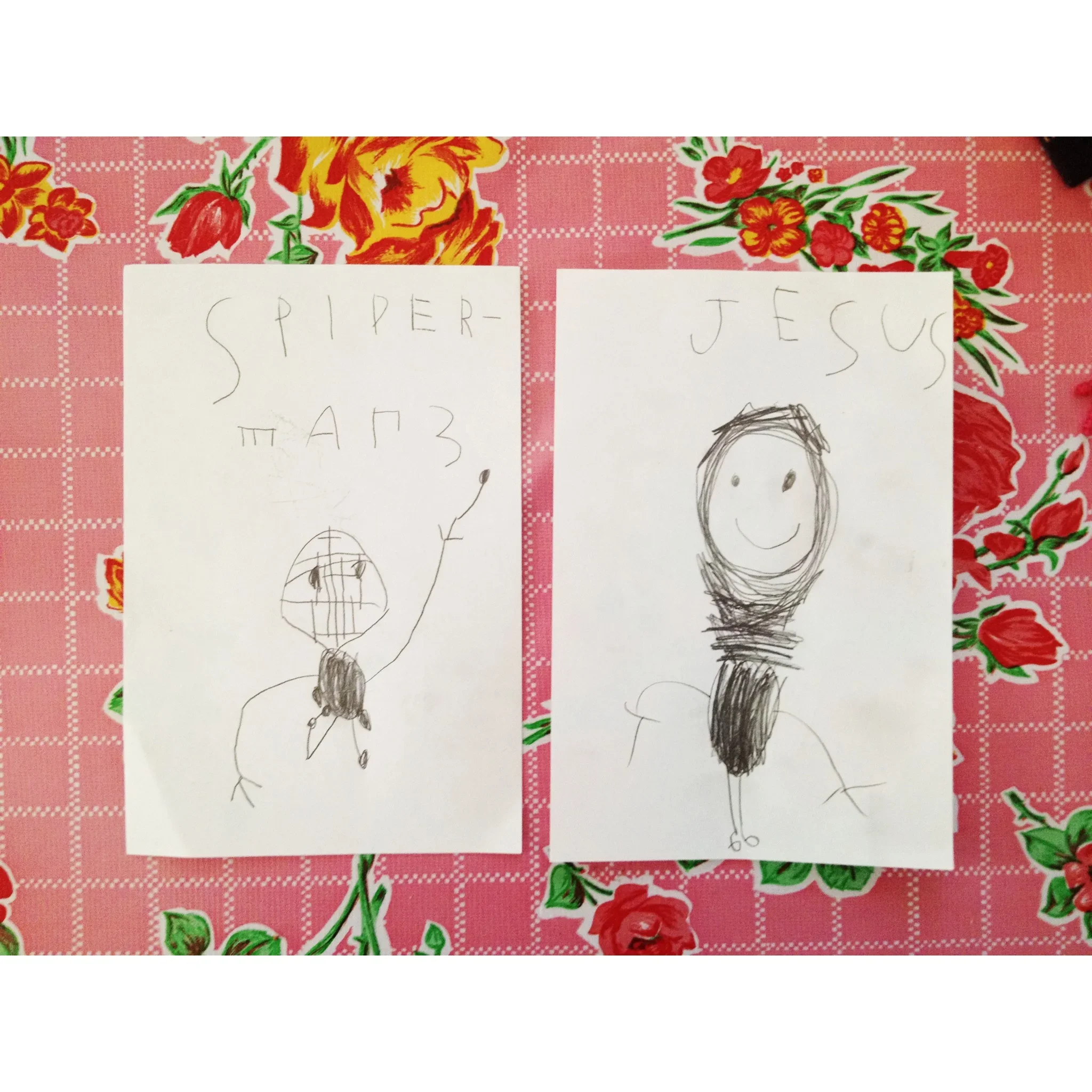 Viggo's portraits of Spider-man and Jesus. I love these so much...