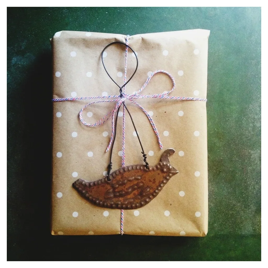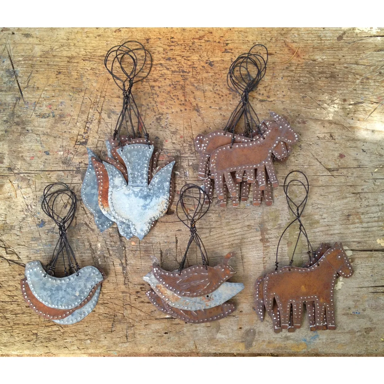 The first batch of Tin Maja Ornaments for the holiday season. Each and everyone of these is cut, punched and wired by hand. 100% handmade.