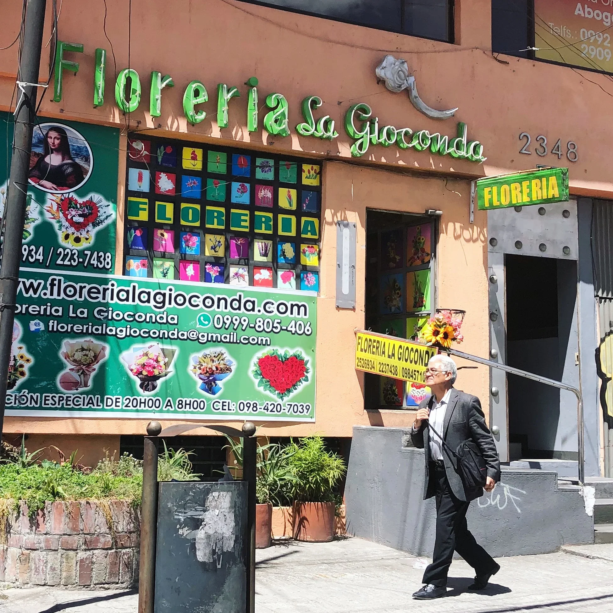 Selling strawberries by the bucket outside of one of the many garden shops in Nayón, Quito. This area is known as El Jardin de Quito , or The Garden of Quito, and is filled with endless streets of brightly colored stalls and greenhouses.