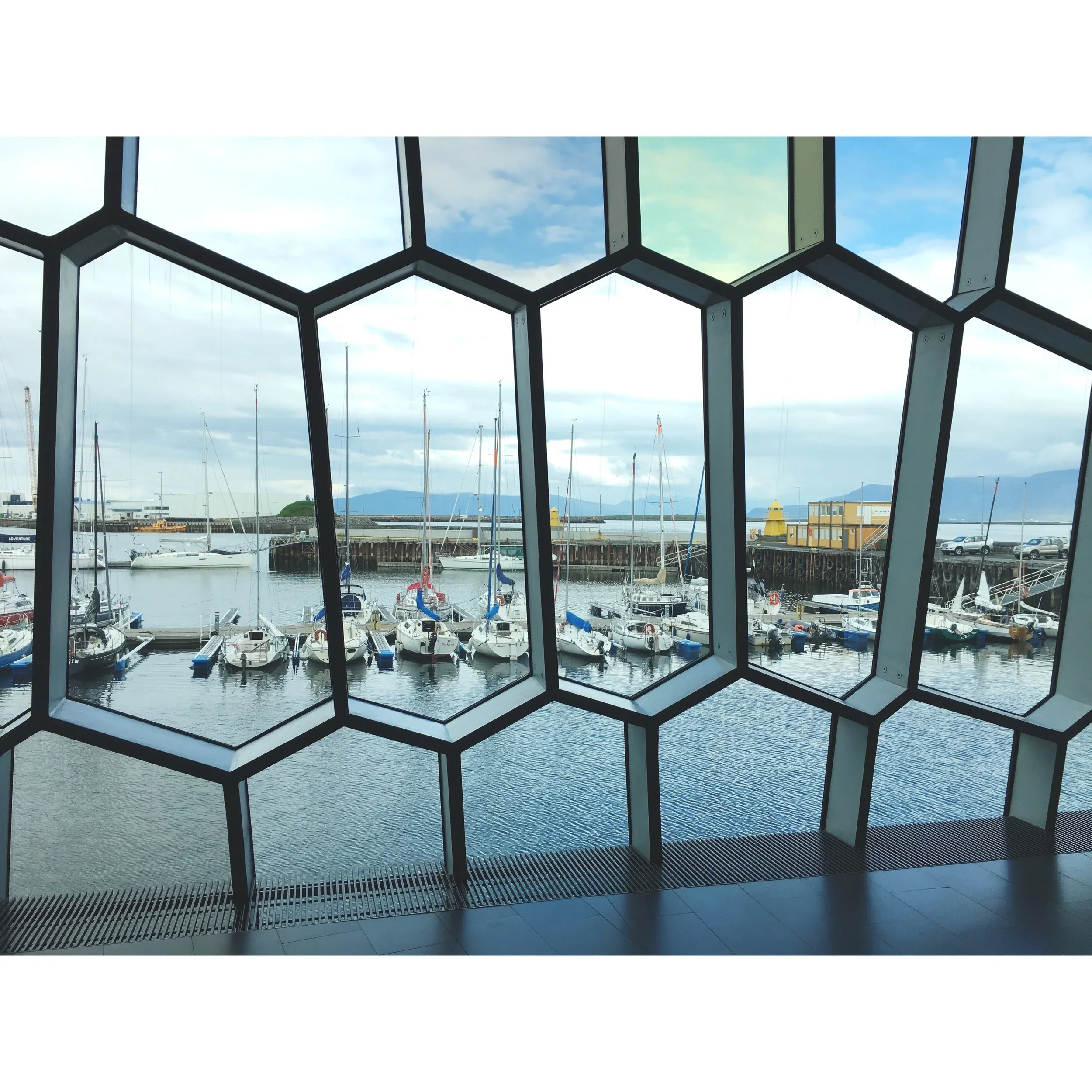 Harpa, the stunning concert hall in downtown Reykjavík, with walls made of honeycomb glass.