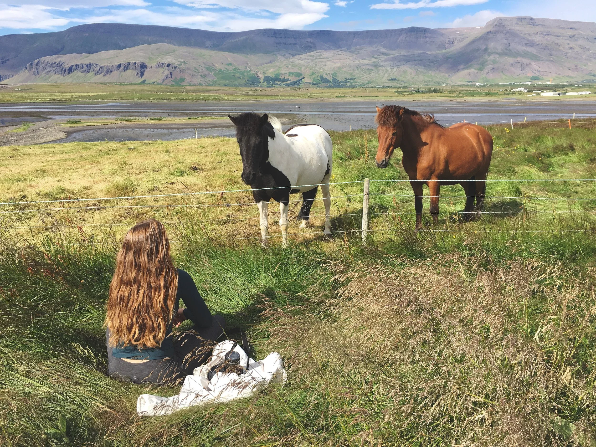 Aurora and Clementine at Gullfoss, with so many tourists we had to block the waterfall to get a picture of just these two!