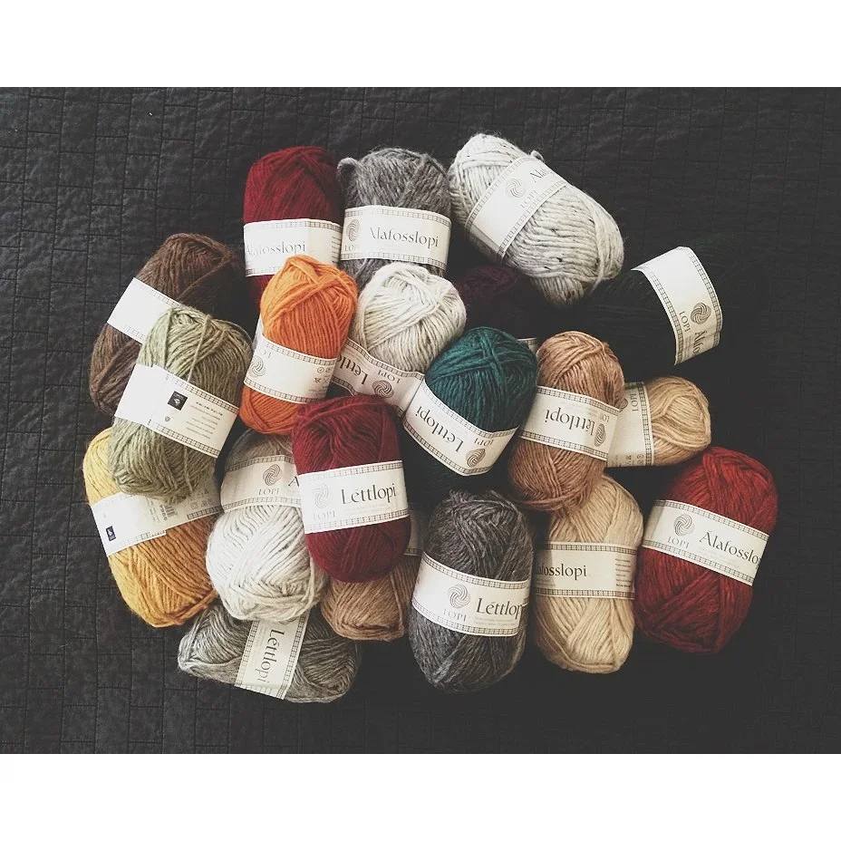 Traditional Lopi yarn is fleeced from Icelandic sheep. The name "lopi" comes from the word "unspun wool". The yarn consists of two layers of the Icelandic sheep's unique wool; one layer of short hair and one layer of longer, softer hair. Lopi is considered to be a lightly processed yarn. Although it is available in a variety of incredible colors (dyed), natural lopi comes in a range of browns, from cream to dark brown.